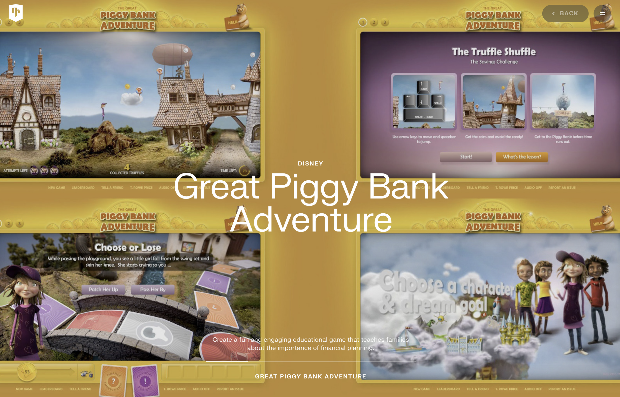 Steve Tatham is proud to have worked as an Imagineer collaborating with global investment management firm, T Rowe Price, to create an online game to enhance kids’ financial literacy. The Great Piggybank Adventure, the game, connected to a physical exhibit at Innoventions at Epcot park in Walt Disney World. The online experience was selected as the best mobile financial app of 2017 (beating out Mint and Venmo).